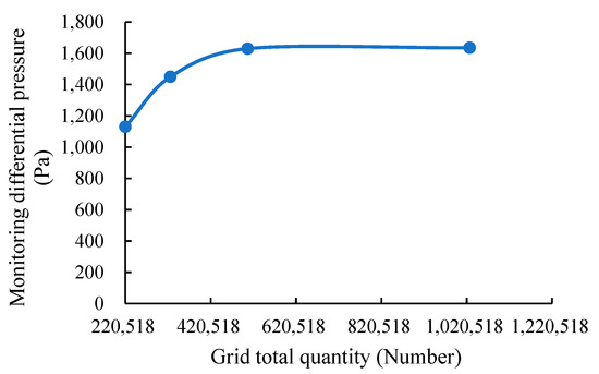 The number of grid cells is related to the accuracy of the calculation results. As the number of grid cells increases, the numerical error caused by grid discretization decreases, resulting in more accurate results. However, excessive grid cells can also increase the computational load. Therefore, before commencing the calculation, an analysis of grid independence must be performed to select an appropriate grid density, ensuring both computational efficiency and the accuracy of the results.