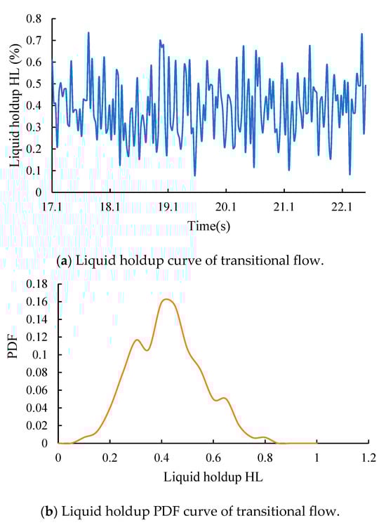 Liquid holdup and liquid holdup PDF curve of transitional flow.