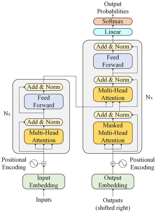 - Vaswani, A.; Shazeer, N.; Parmar, N.; Uszkoreit, J.; Jones, L.; Gomez, A.N.; Kaiser, L.; Polosukhin, I. Attention is all you need. In Proceedings of the 31st International Conference on Neural Information Processing Systems, Long Beach, CA, USA, 4–9 December 2017; pp. 6000–6010. [Google Scholar]