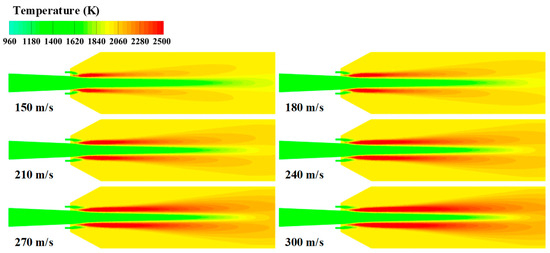 Figure 6. Temperature distribution with different fuel jet velocities.