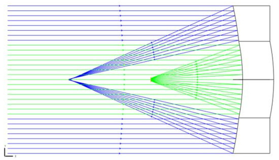 Geometry of a double-curvature metal optical lens designed using the Zemax software program.
