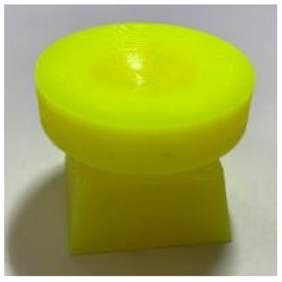 The Nobel Superfine 3D printer (XYZprinting Inc.) was used to print wax models of optical lenses for investment casting. This device employs digital light processing technology for light curing to print wax components, achieving a print speed of 10 cm3/h and a resolution of 50 μm. The printing material used in the aforementioned device was yellow wax casting resin (P/N: RUCS1XGB00B). The viscosity of this resin at 25 °C ranged from 150 to 300 mPa·s, its density was between 1.0 and 1.2 g/cm3, and its Shore hardness varied from 55 to 75 HS. The printing process of the Nobel Superfine 3D printer involved adjusting the model orientation in the STL file of the designed optical lens by using print preparation software and then converting this orientation into a numerical motion path for the printer to create a wax model. The thickness of the layers printed by this device was 0.05 mm. During 3D printing with this device, if the fabricated component is suspended, it must be supported using support material. Usually, only the top end of the support contacts the main structural member; if the top diameter of the support is set too small, it may not be supported during the printing process. On the contrary, if the support is thicker, it will be more difficult to remove during post-processing. It is recommended that the top support size be set at about 0.6mm diameter and the bottom support size at about 0.8mm. However, after the support material is removed, residual connection structures can remain on the component’s surface. Therefore, the print orientation had to be carefully selected to avoid the need for support material on critical surfaces. Moreover, the gravity force also becomes a critical parameter that affects the roughness of both the upper and bottom surfaces during the 3D printing process. In general, the surface roughness of the upper face is lower than the bottom side after the 3D printing process. In the present study, the fabricated lenses were oriented with their reflective surface facing upward to avoid the need for a support material on the lens surface. Figure 3 depicts the designed orientation of the fabricated optical lenses, which did not require support structures connected to the lens surface. Figure 4 shows the wax component of a metal optical lens; this component was fabricated through 3D printing.