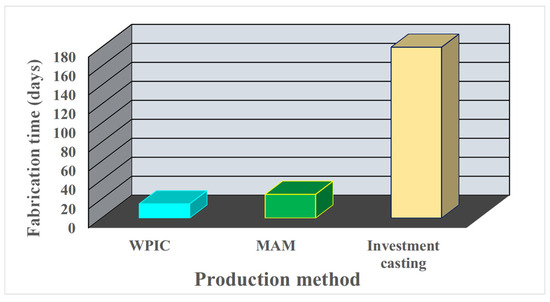 Manufacturing efficiency of WPIC, MAM, and investment casting.