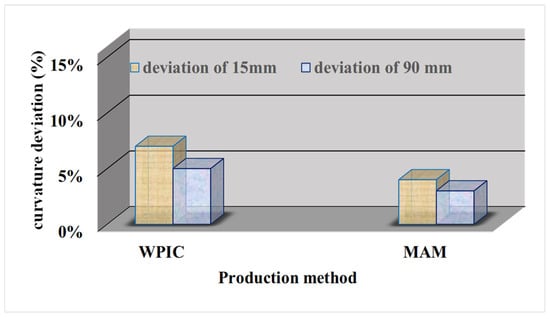 Deviations in the radii of curvature of metal lenses fabricated through WPIC and MAM.