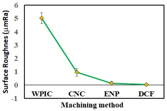 - The surface roughness of metal optical lenses produced through WPIC decreased from 5.02 µm Ra to 0.02 µm Ra after they were subjected to CNC machining, ENP, and diamond grinding in sequence. The final lens surface was highly smooth and bright.