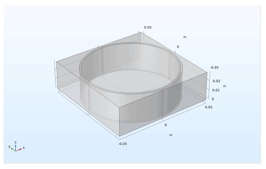 The simulation using a conventional XY-direction excitation source cannot accurately reflect the primary incident direction of sound waves in real engineering applications. When attempting to simulate a standing wave tube, accurately replicating its periodic structure is not feasible. To address this issue, this paper innovatively proposes exciting a 10 × 10 unit cell structure phononic crystal plate in the Z-direction. By configuring a reasonable PML and boundary conditions, a more precise simulation of the TL in real engineering application environments can be achieved. The model is illustrated in Figure 4.