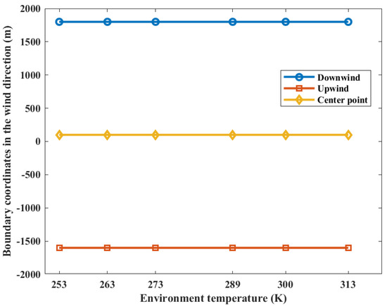 From a global perspective, environmental temperatures exhibit significant variations with the change of seasons and latitudes. The environmental temperature has two effects on the evaporation and gas diffusion of a liquid pool. Firstly, it affects the evaporation efficiency of the liquid pool. Secondly, it affects the gas diffusion effect. The evaporation process is not considered in this research. Therefore, the environmental temperature changes the diffusion of flammable gas clouds by affecting the gas diffusion effect. Based on realistic environmental temperatures, six sets of temperatures are selected for the study, including 253 K, 263 K, 273 K, 289 K, 300 K, and 313 K.