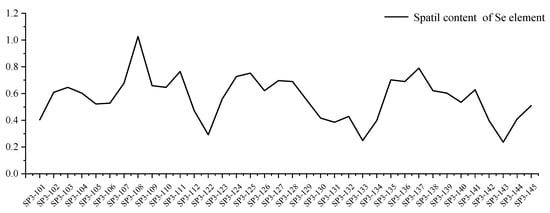 From the horizontal profiles of SP1 and SP3 (Figure 6 and Figure 7), all points reached selenium concentrations, except for five points (SP1-4, SP1-29, SP3-122, SP3-133, SP3-143); most points along the profile lines reached selenium-rich concentrations, which is consistent with the selenium evaluation map.