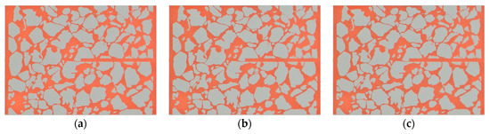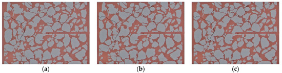 As the water was injected into the formation water, obvious red scaling crystals were formed, demonstrating a prominent incompatibility. The scaling crystals underwent unstable precipitation, migration, and repeated scaling in the microfluidics chip (Figure 15). The injected water and the formation water were mixed first at the inlet of the model, and the supersaturated solution produced microcrystals under the stimulation of various nucleations. The microcrystals migrated under the water injection pressure and stopped migrating as they migrated to and clogged the pore throats. Therefore, the obvious red scaling crystals appeared first at the pore throats. With the continuous mixing of the injected water and the formation water, repeated crystallization and scaling occurred, with the previous microcrystals acting as crystal nuclei. With repeated scaling, the scaling crystals adhered and became tightly bound to the pore walls in the model, with most scaling crystals incapable of migrating after clumping and a few single crystals still migrating under the water injection pressure [26]. In the local scaling process of the main flow channel, smaller pore throat radii facilitated clogging by the microcrystals, leading to greater probabilities of producing observable scaling crystals and scale crystal clumps on such pore or throat surfaces.