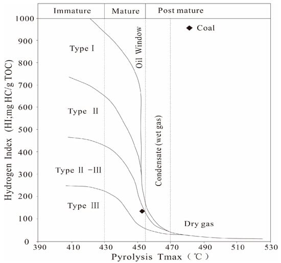 Several geochemical studies have been conducted focusing on the geochemical characteristics and hydrocarbon generation potential of the source rocks in the Yanan Sag [,]. However, some results used other formations or other sag source rocks, which were from a similar geological background, instead of the Yanan Sag to determine the main gas generation time and potential [,]. Due to the significant differences in geological environments between marine coal-bearing basins and terrestrial basins, there may be biases in the evaluation of hydrocarbon generation potential. In this paper, coal from Yanan Depression was used to investigate the hydrocarbon generation process, potential, kinetic mechanism, and the construction of a generation model. This work will help to investigate the effective source area and gas migration and accumulation efficiency.