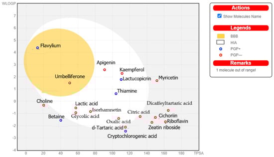 Boiled egg presentation for ADME analysis of C. Intybus bioactive molecules.