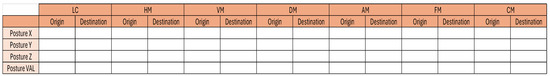 Table 13 and excluding the validation postures, it is possible to see that the most critical posture is posture X, which represents the greatest ergonomic risk, as it has the highest OWAS and NIOSH values. However, although the REBA value is not the highest, it does have more weight compared to posture Y, where the OWAS and NIOSH values are lower.