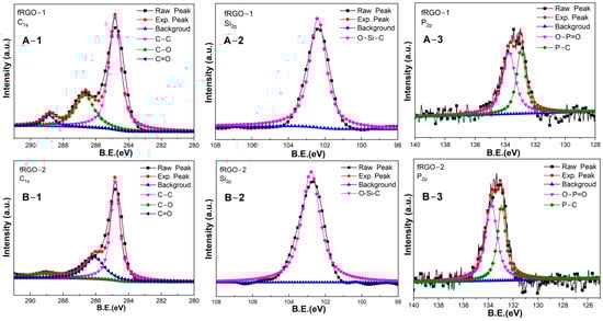 High-resolution C1s, Si2p and P2p spectra of (A-1–A-3) fRGO-1 and (B-1–B-3) fRGO-2.