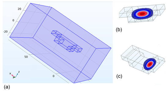Figure 3b,c show the difference in these states. For the normal state, the wave function is located symmetrically over the QD volume. The “deep” state relates to the asymmetrical localization of the wave function within the quantum dot area that is deeper with more confinement energy. In other words, the deep negative part of the resulting effective potential generates a deeper electron state in a smaller volume compared to the regular case. In this case, the electron wave function is localized in such regions of the quantum dots, as shown in