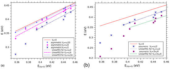 The energy shift observed in the spectral deviations exhibits a linear behavior, depicted as parallel lines, with the same magnitude for all spectral levels when . Conversely, when , this regularity is disrupted. The lines develop irregularities, suggesting the presence of at least two distinct patterns.