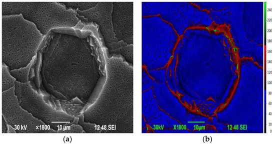 Pores with at least half of the boundaries visible were the objects of the study. This choice was due to the highest concentration of particles with broken bonds and the most intense formation of ZnO at the pore boundaries.