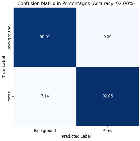 A percentage error matrix for determining the number of pores of porous silicon using YOLOv8 neural network.
