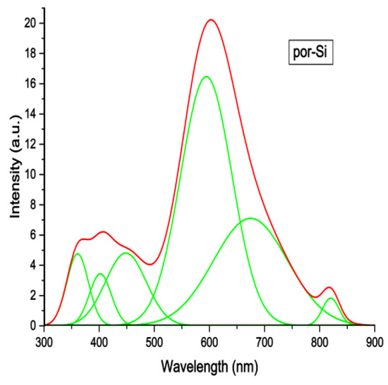 - Suhaimi, M.F.; Rusop, M.; Abdullah, S. Porosity and thickness effect of porous silicon layer on photoluminescence spectra. In Proceedings of the 2013 International Conference on Technology, Informatics, Management, Engineering and Environment, Bandung, Indonesia, 23–26 June 2013; pp. 115–118. [Google Scholar] [CrossRef]