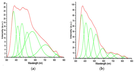 Photoluminescence studies were carried out using a spectrophotometer Cary Eclipse (Agilent, Santa Clara, CA, USA) in the range from 200 to 800 nm. The PL spectra of the samples were measured at room temperature (the wavelength of the exciting radiation was 320 nm). The spectral width of the slit in this device varied from 0.5 to 2.4 nm. A deuterium lamp was employed as the radiation source for UV measurements, while a tungsten-halogen lamp was used for visible measurements.