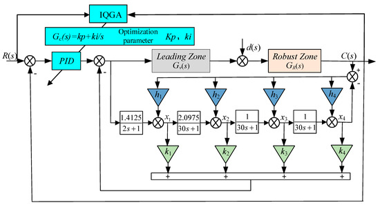 Overall, the internal loop of the SCR denitrification system initially employs a state observer design for state reconstruction, followed by the state feedback design to position the poles and enhance the system response speed. The external loop utilizes the robustness of the PID control for fine-tuning. Additionally, the IQGA is integrated to optimize the PID parameters. Hence, the overall control framework of the system is as illustrated in Figure 8.