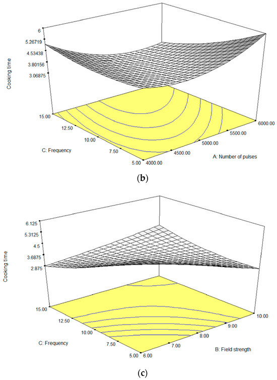 | Cooking time (min) | 7.0 ± 0.58 a | 5.0 ± 0.00 b | 3.0 ± 0.00 c | 15.0 ± 0.58 a | 9.0 ± 0.58 b | 4.0 ± 0.00 c |