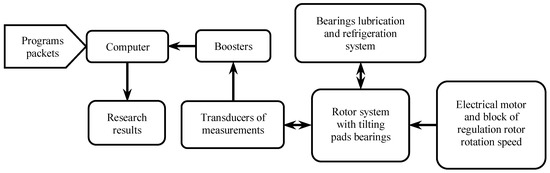 The research system consists of the rotor system for tilting pad bearings: bearing lubrication and refrigeration system; transducers of measurements; boosters; computer; and program packets.
