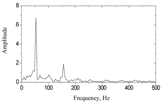 After the primary measurement results, Fourier function transformation (FFT) was conducted, as indicated in the rotor vibration spectrum graph (Figure 7). It can be seen that the critical speed frequency of the researched system is obtained by a rotor rotation speed of 3300 rpm.