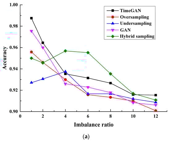 (4) In comparison with other imbalanced data handling methods, the kick detection model performed better when using TimeGAN to generate synthetic kick data (Table 8). The model’s kick identification capability is the best when the sample imbalance ratio is 1 but decreases as the imbalance ratio increases (Figure 11). Achieving a near-balance of positive and negative samples through appropriate data augmentation techniques is key to ensuring accurate kick identification by the intelligent model.