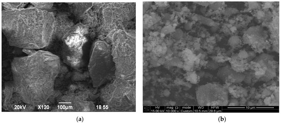 Upon mechanical activation, the intensity of this band increases significantly, indicating a greater dispersion of the zeolite particles and enhanced structural changes. Further analysis of the particle morphology was conducted using scanning electron microscopy (SEM), providing detailed insights into the physical modifications induced by the mechanical treatment (Figure 3).