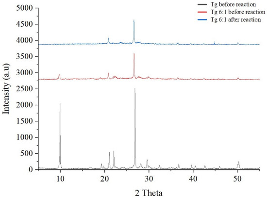 XRD profiles of Tg zeolite pre- and post-reaction.