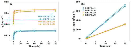 3.2. Cr(VI) Adsorption Kinetics in the Presence of LA