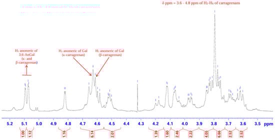 1H spectrum of carrageenan extracted from field-cultivated B. gelatinus.