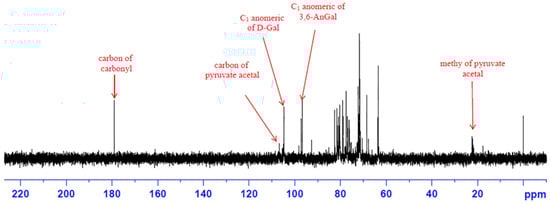 13C spectrum of carrageenan extracted from field-cultivated B. gelatinus.