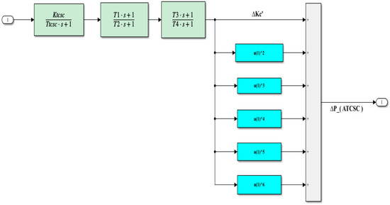 We used the first six terms of Equation (18) to increase the ATCSC’s effectiveness for power system stability. Figure 13 shows the structure with utilized lead-lag blocks [18].