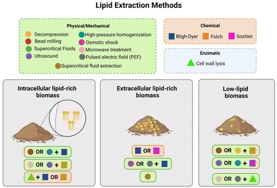 - Ren, X.; Zhao, X.; Turcotte, F.; Deschênes, J.S.; Tremblay, R.; Jolicoeur, M. Current Lipid Extraction Methods Are Significantly Enhanced Adding a Water Treatment Step in Chlorella protothecoides. Microb. Cell Fact. 2017, 16, 26. [Google Scholar] [CrossRef] [PubMed]