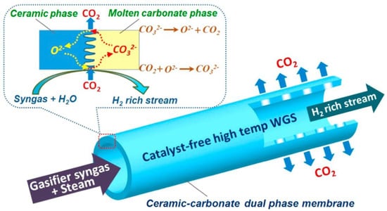 - Dong, X.; Lin, Y.S. Catalyst-free ceramic-carbonate dual phase membrane reactor for hydrogen production from gasifier syngas. J. Membr. Sci. 2016, 520, 907–913. [Google Scholar] [CrossRef]
