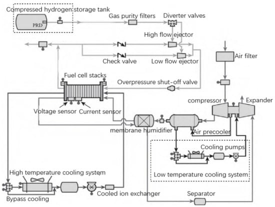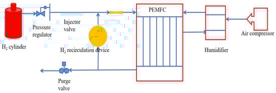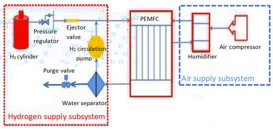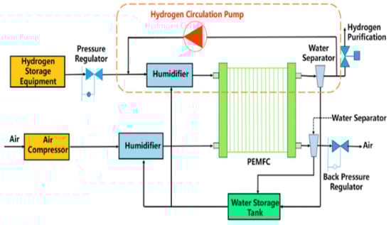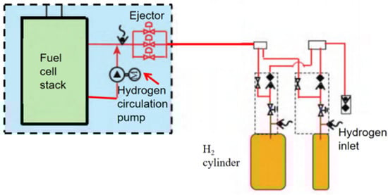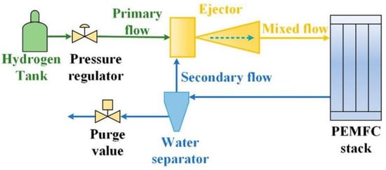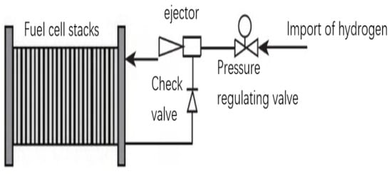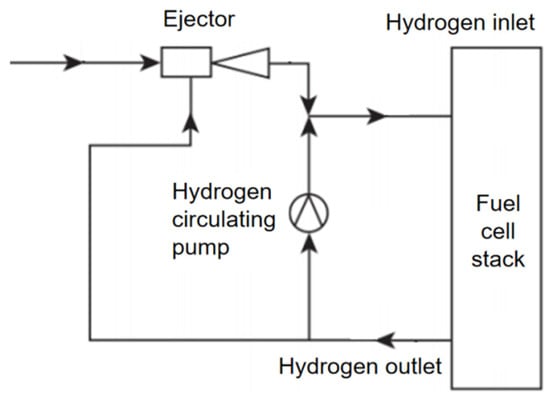 28]. The hydrogen circulation system is mainly composed of a hydrogen fuel cell stack, a steam separator, a hydrogen circulating pump, an ejector, a H