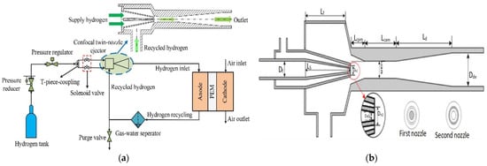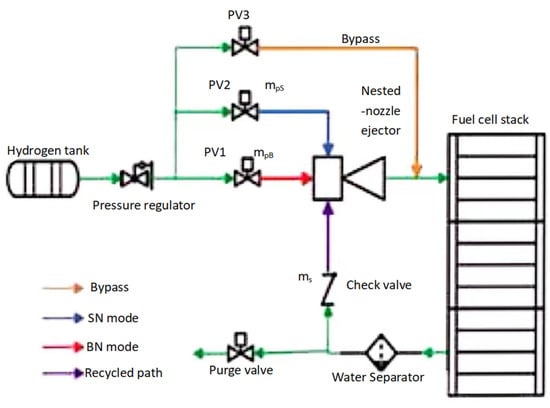 52] uses a two-stage variable nozzle ejector to control the hydrogen cycle in the FCX Clarity fuel cell vehicle (a hydrogen fuel cell car from Honda). The structure of the hydrogen supply system is exhibited in