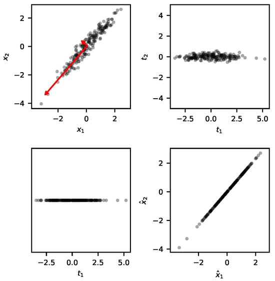 - Nonlinearity: There are two main strategies for incorporating nonlinearity into PCA. The first involves the use of neural networks, as proposed by several researchers: (i) Kramer [82], who developed an approach based on associative networks; (ii) Dong and McAvoy [83], who combined neural networks using the principal curves algorithm [84]; (iii) Jia et al. [85], who applied a network called IT-net [86] to process monitoring; and (iv) Liu et al. [87], who combined networks with the SVDD (support vector data description) technique, a machine learning method described in Section 4. The second strategy is the use of the kernel-PCA (KPCA) technique, developed by Scholkopf et al. [88], applied in process monitoring by Lee et al. [89] and Choi et al. [90] and further developed in several works [91,92,93,94,95,96,97,98]. A kernel is a function that maps data points into a higher-dimensional space, where nonlinear representations can be captured using linear relationships [99]. In addition to these two main strategies, there are other approaches for adapting PCA to nonlinearity, such as the use of the genetic algorithm [100]. Recent reviews on applications of the kernel technique in process monitoring have been published [99,101,102].