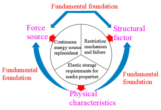 The “three-factor” induction theory for rock bursts was proposed by Qi et al. [53,54], which suggests that the three key factors affecting the evolution and occurrence of rock bursts are divided into force source, physical property, and structural factors (see Figure 4).