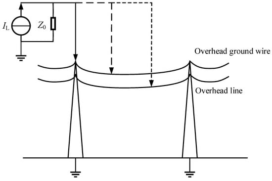 Figure 3 illustrates overhead lines experiencing winding strikes and counterstrikes. In this representation, IL denotes a controlled current source, while Z0 denotes the lightning channel’s equivalent wave impedance, which is specified as 300 Ω [].