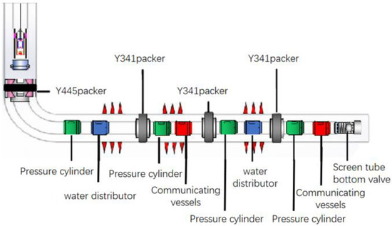 Schematic diagram of the integrated process string for fracturing and oil displacement in horizontal well flow field reconstruction.