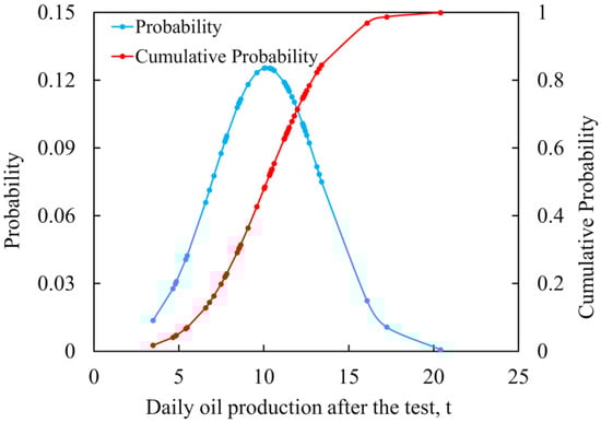 Normal distribution curve of daily oil production from industrialized test horizontal wells in the Yuan 284 area.