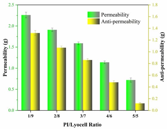 Permeability of PI/lyocell composite spunlace nonwoven fabric with different blending ratios.