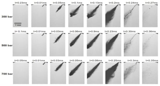 - Hwang, J.; Bae, C.; Patel, C.; Agarwal, A.; Gupta, T. Near Nozzle Flow and Atomization Characteristics of Biodiesel Fuels. In Proceedings of the International Powertrains, Fuels & Lubricants Meeting, Beijing, China, 16–19 October 2017; SAE Technical Paper. Volume 01. [Google Scholar]