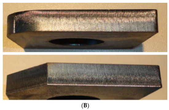 There are several laser performance characteristics that may provide all-around surface integrity of the processed part. In this work, only the surface roughness was measured, since it is an effective indicator of the quality status of the machined area of the workpiece. Surface roughness (SR) is an important performance characteristic because it allows the synchronous assessment of both, product and process, capabilities. Usually, the surface roughness is a product characteristic which is sought to be minimized. If the unit surface is assessed to be smooth for a particular application, then the achieved performance may be adequate as long as the measurements are shown to be repeatable. Generally speaking, for this type of processing, the surface is considered smooth with the proviso that the laser cutting performance is maintained at Ra < 6.3 μm. Surface roughness measurements (Figure 2) were carried out by a portable roughness gauge (CARLSURF 9J008, RugoSURF, TESA, Renens, Switzerland).