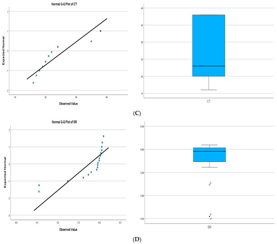 A check on the normality status of the four process/product characteristics is shown in Table 7. Both standard tests, Kolmogorov–Smirnov and Shapiro–Wilk (IBM SPSS v.29), have been utilized to quantify the level of significance of the results (α = 0.05).