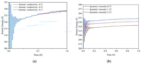 - The characteristics of the lubricant itself also affect the heat transfer mechanism. As the lubricant dynamic viscosity decreases, the rate of fluid temperature rise increases slightly, but the degree of fluid kinetic energy enhancement decreases significantly. As the fluid heat transfer coefficient rises, the heat absorbed by the fluid increases, the temperature rises, and the increase in fluid kinetic energy decreases slightly. That is, under the premise of keeping the other properties unchanged, for a certain range of increase in the thermal conductivity of the lubricant, reducing the kinetic viscosity can effectively improve the lubricant’s heat dissipation effect on the gear.