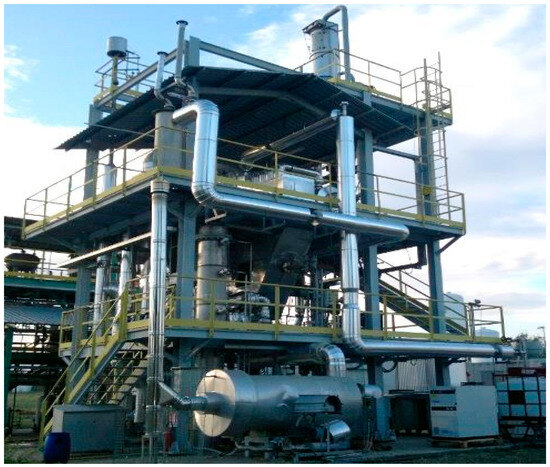 The updraft fixed-bed gasification plant (Figure 11) employs a 150 kWth reactor and facilitates a steam/air gasification process that generates a producer gas of LHV 5–6 MJ/Nm3dry. It has been designed to carry out the gasification conversion of a feedstock with a high biogenic fraction. The plant is equipped with a wet purification system run on biodiesel.