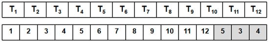 The shaded area in Figure 3 is the second part of the chromosome, indicating that the first five test points, 1, 2, 3, 4, and 5, are the first group; the middle three test points, 6, 7, and 8, are the second group; and the last four test points, 9, 10, 11 and 12, are the third group.